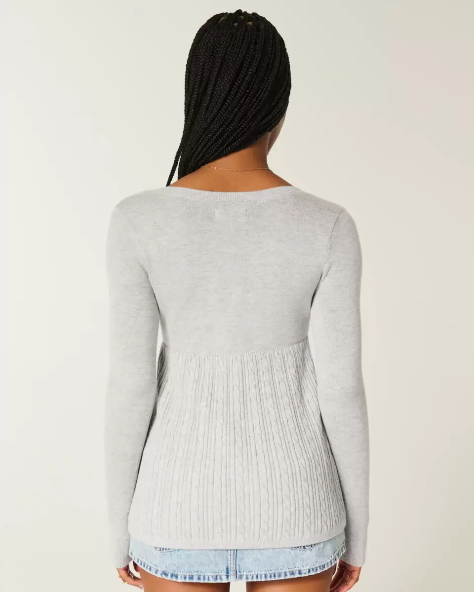 Perfect for layering with a cami or on its own, this long-sleeve sweater is designed with a square neckline and cute Y2K-inspired babydoll silhouette. Front button closure, cable-k