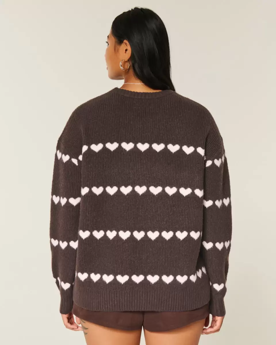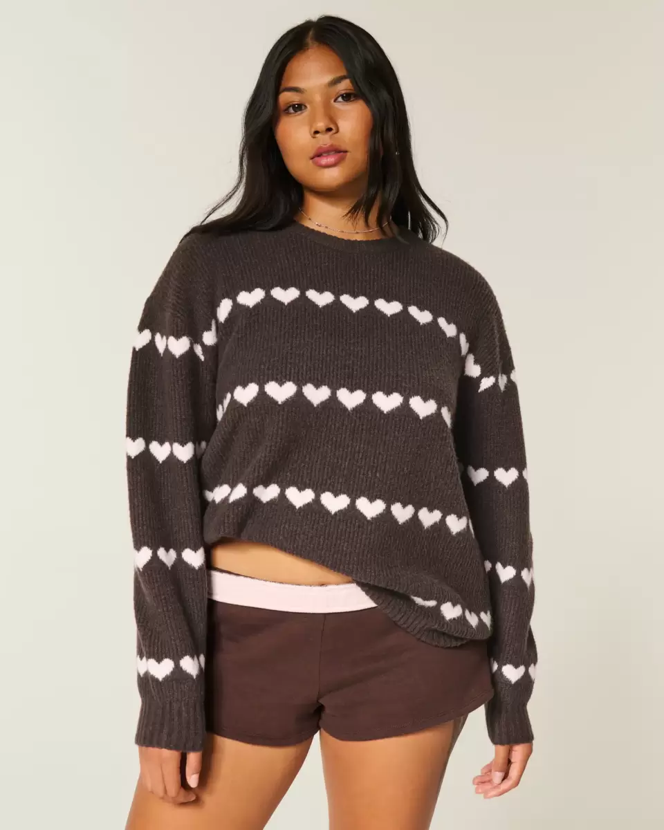 Oversized Heart Pattern Crew Sweater