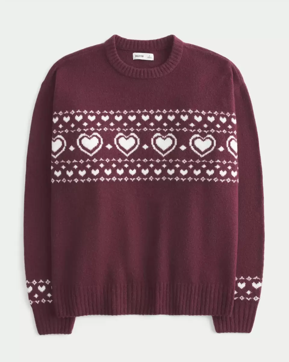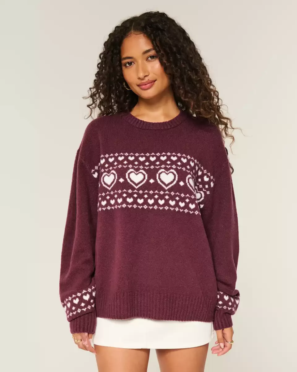 Oversized Heart Pattern Crew Sweater