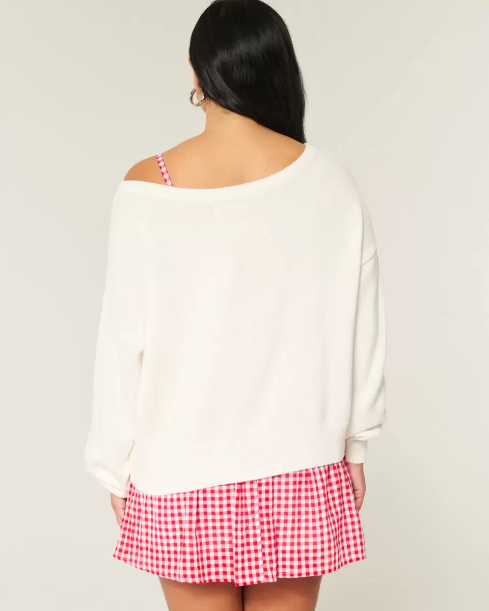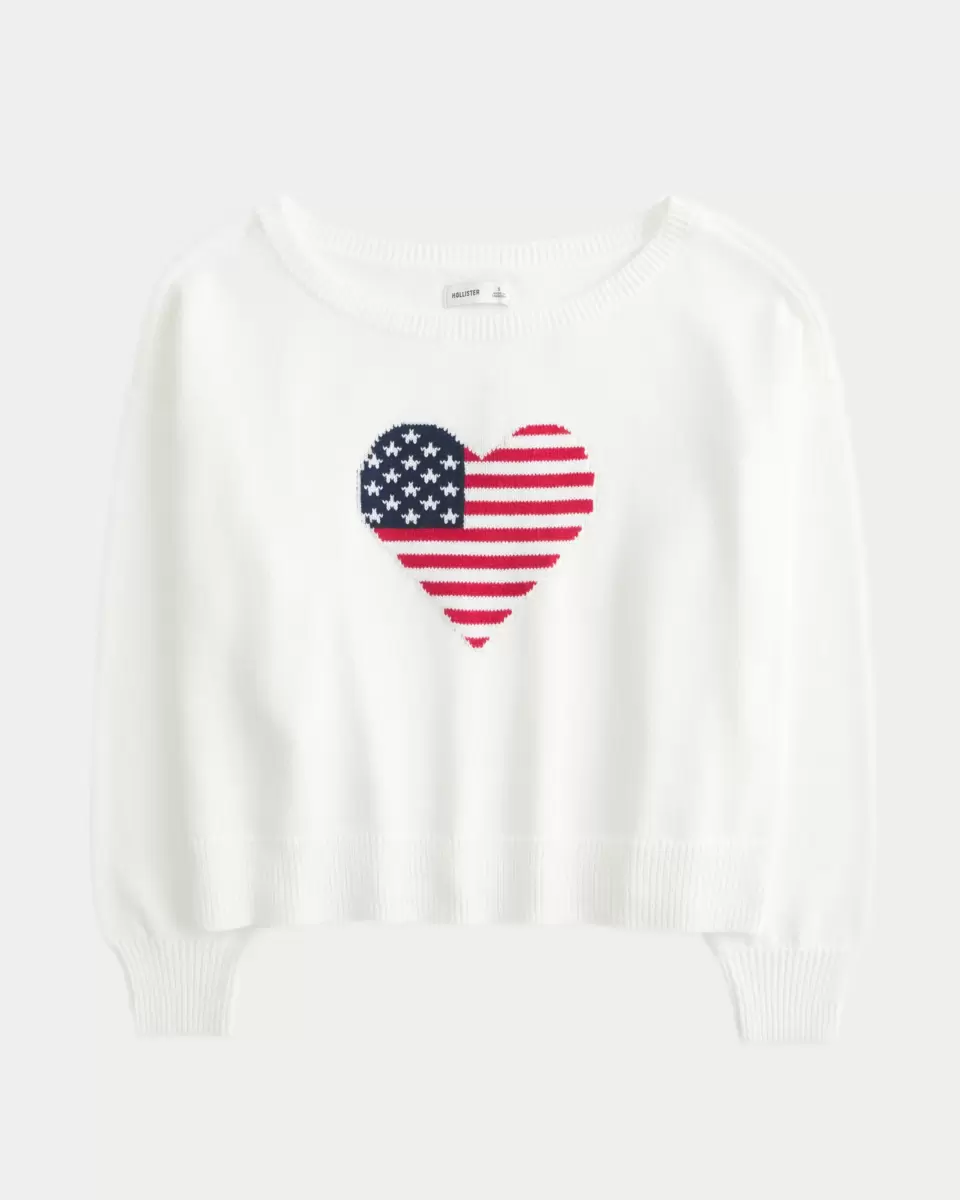 A cozy and super soft sweater with a slouchy off-the-shoulder neckline and American Flag heart intarsia graphic. Ribbed trims. Easy Fit. Imported.
