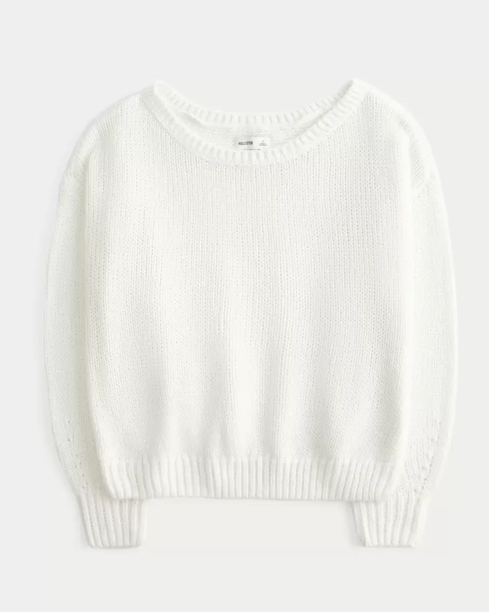 A cute, cozy and super soft sweater with a slouchy silhouette and off-the-shoulder neckline. Ribbed trims, long sleeves. Imported.