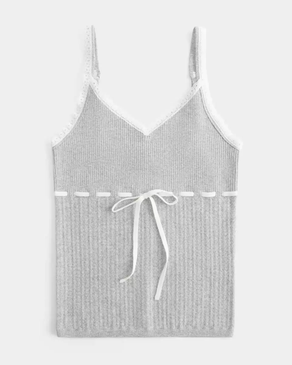 A pretty sweater-knit tank with cozy texture, featuring a pretty tie detail. Scalloped trim along the neckline. Imported.