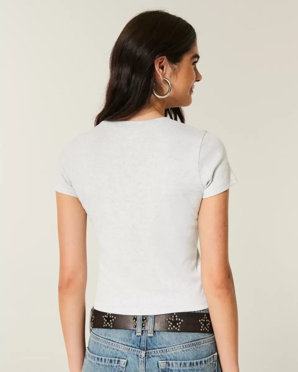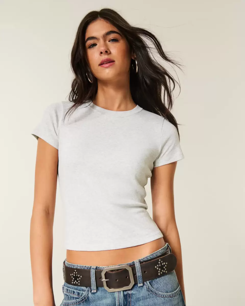 A cute and super soft baby tee designed with a slightly shrunken silhouette. Crew neckline, short sleeves. Easy Fit. Imported.