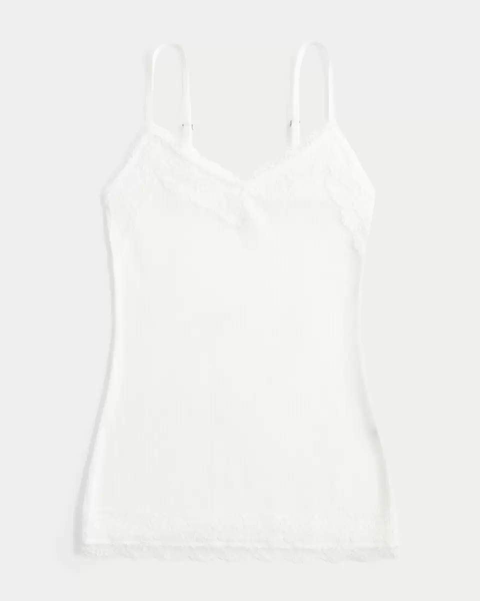 Pretty and super soft, this Y2K-inspired cami features lace trim at the neckline and hem. Adjustable straps. Slim Fit. Imported.